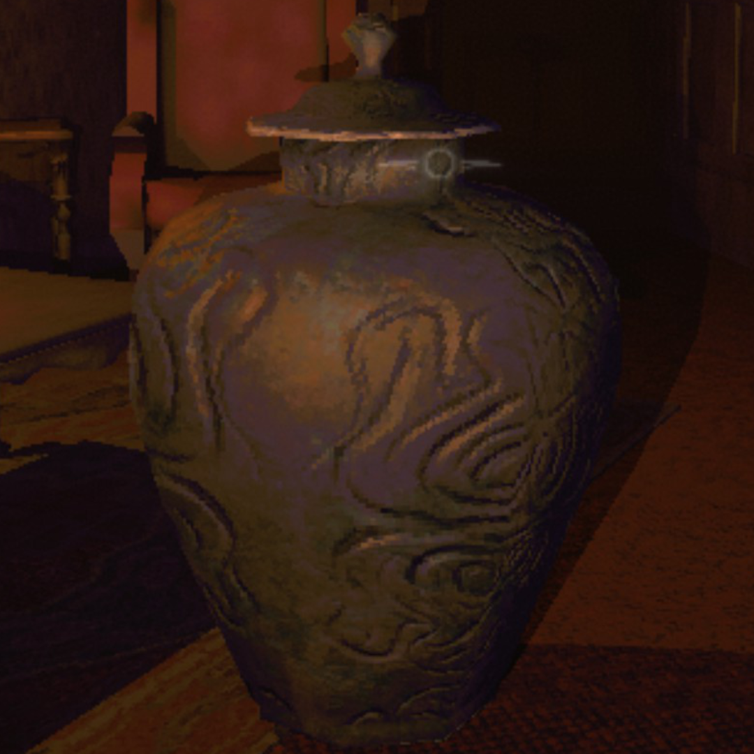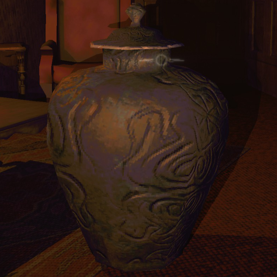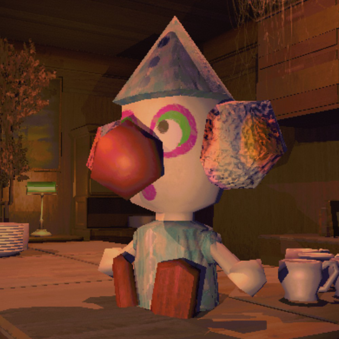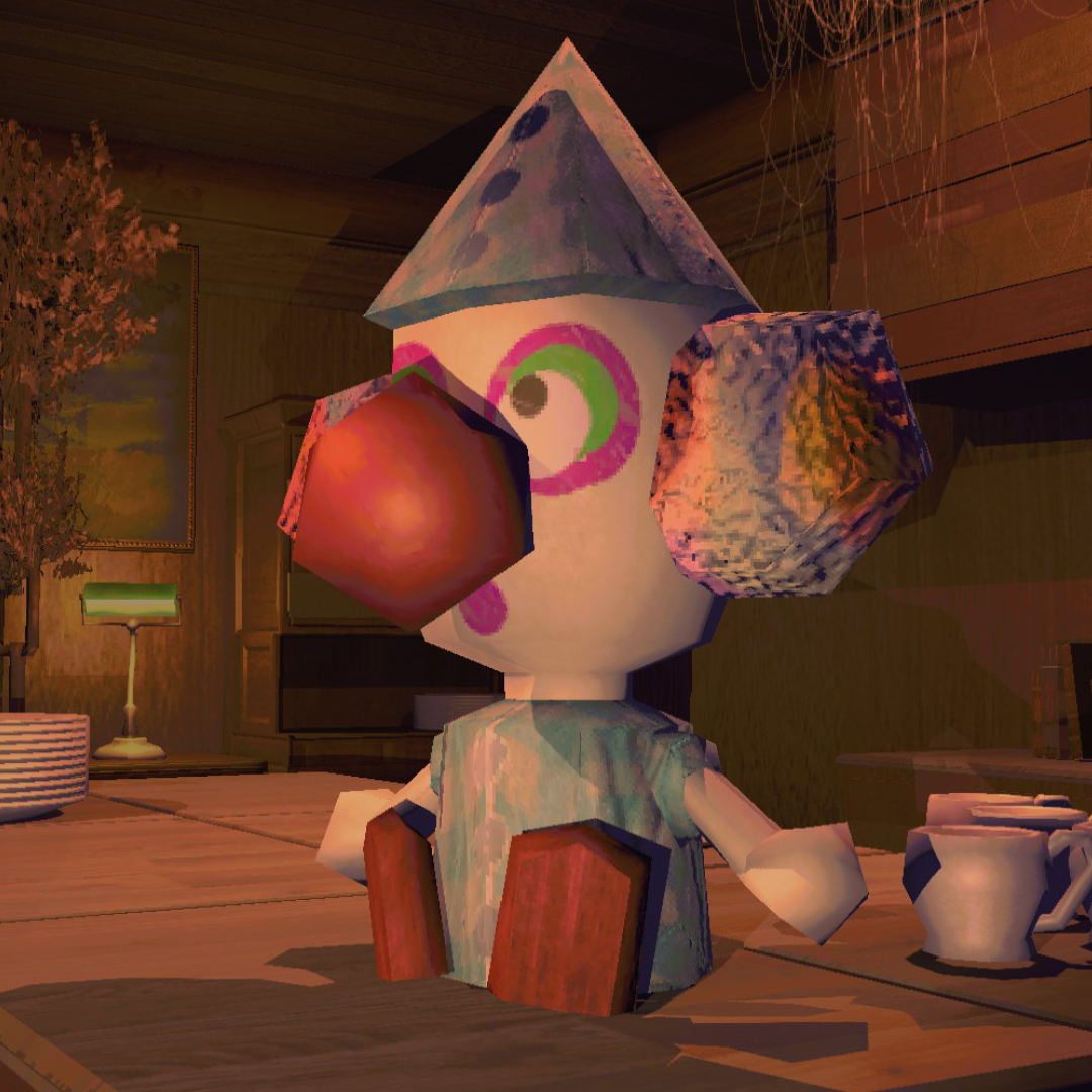 Surface detail on the vase and sharper edges on the clown figure. Shadows render properly instead of blocky artifacts.
