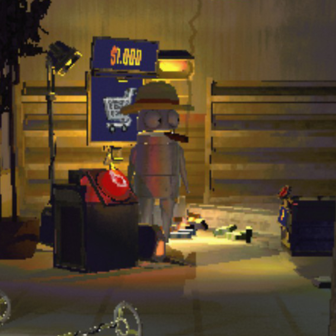 Hazard stripes, text, and fine geometry all render without the jagged staircase edges.
