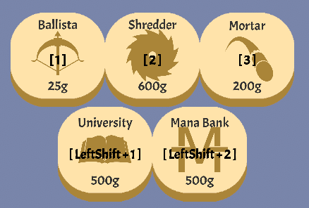Since buildings are put into a separate row from towers, we use a combo key to access them.