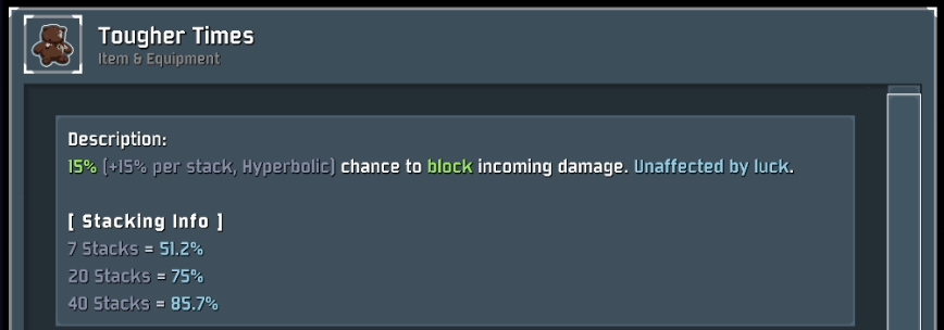 - Some items with special stacking types (or important break points) have charts added to their logbook descriptions to showcase their unique properties.