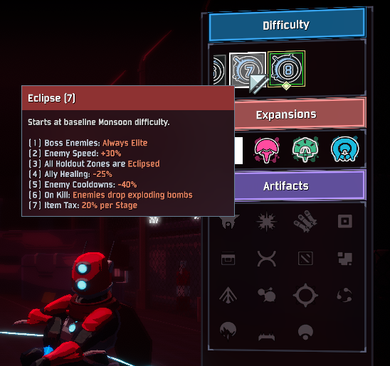 Allows the selection of certain artifacts for Eclipse, as well as ALL unlocked Eclipse levels.